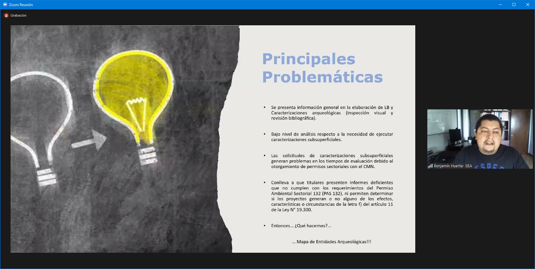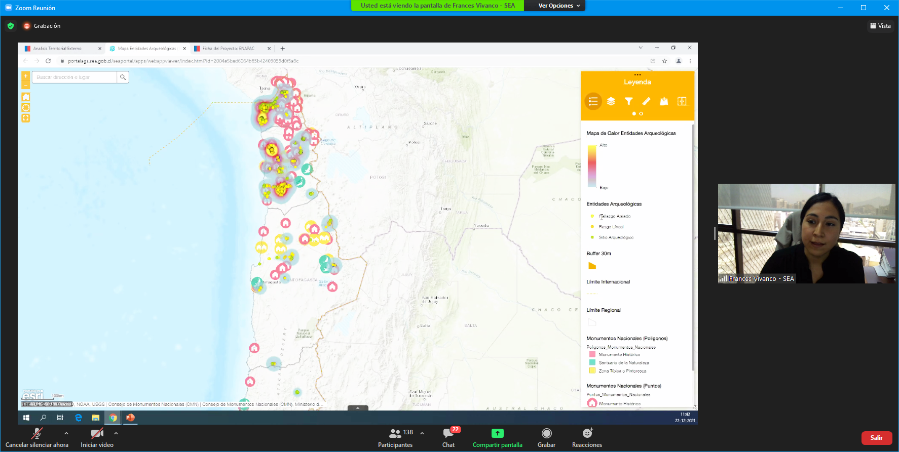 La exposición central —que contó con más de 150 profesionales participantes— estuvo a cargo del Departamento de Proyectos Complejos del SEA, liderado por María Loreto Grasset, y los profesionales que trabajaron directamente en la creación de esta herramienta para la evaluación ambiental, Benjamín Huerta, arqueólogo, y Frances Vivanco, geógrafa.