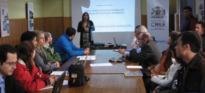 Profesionales de distintos servicios públicos y municipios que operan a través del e-SEIA en la evaluación ambiental de proyectos, fueron capacitados por profesionales del Servicio de Evaluación Ambiental, fundamentalmente en dos materias: “Modificaciones Legales a la Institucionalidad Ambiental” y “Uso eficiente y oportuno del Sistema de Evaluación Ambiental Electrónico”.