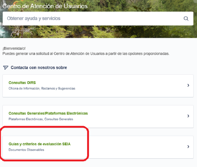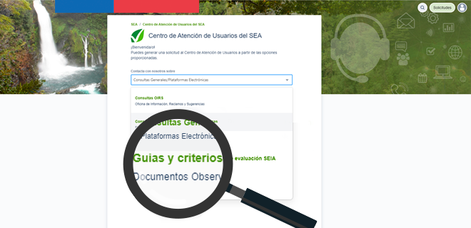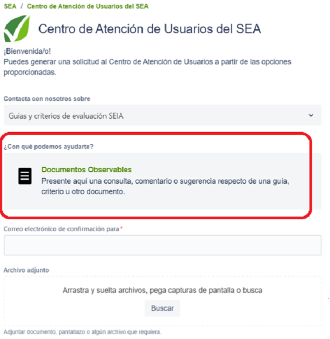 El canal se encuentra disponible en el Centro de Atención de Usuarios del SEA. En dicha sección se puede seleccionar el tipo de consulta donde se encuentran guías y criterios de evaluación, podrán seleccionar específicamente el documento que se desea consultar, incluso adjuntar un archivo en la solicitud.