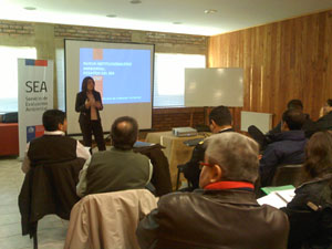 Posteriormente, los profesionales del servicio Nelly Nuñez, Doris Sandoval, Carlos Ojeda, Rodrigo Román, Cristian Oyarzún y José Luis Riffo presentaron un interesante programa de contenidos, abordando materias tales como: análisis de los pronunciamientos sectoriales; modificaciones de la Ley 19.300; aplicabilidad de los PAS por área de estudio; seguimiento y fiscalización; modificaciones relativas a participación ciudadana; perfeccionamiento de los pronunciamientos de los proyectos de centros de engordas de salmonideos que ingresan al Sistema de Evaluación de Impacto A.