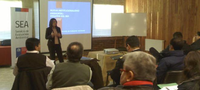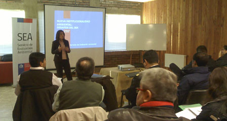 La jornada denominada “Desafíos y tareas en el marco de la nueva institucionalidad ambiental: modificaciones y aplicación de la nueva legislación, institucionalidad evaluadora, participación y ciudadanía”, fue liderada por la directora regional del SEA, Karina Bastidas Torlaschi, quien abordó los principales desafíos y características de la nueva institucionalidad ambiental, las modificaciones introducidas por la Ley 20.417 y las tareas del nuevo Servicio de Evaluación Ambiental.