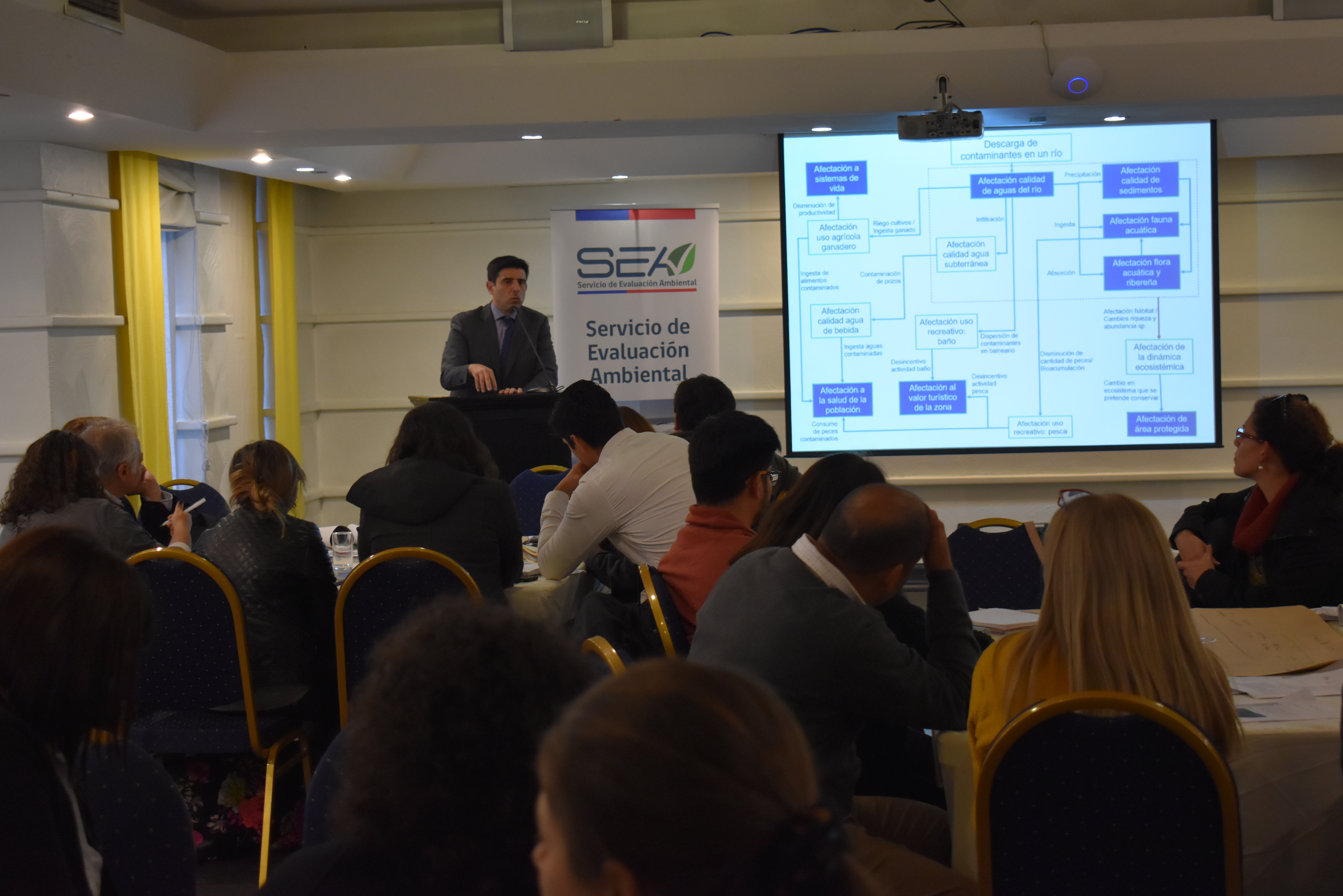 La jornada -que se enmarca en el objetivo estratégico del SEA de “fomentar la generación de competencias técnicas ambientales en los Servicios Públicos”- se realizó en el Hotel Fundador de Santiago y asistieron cerca de unos 40 profesionales.