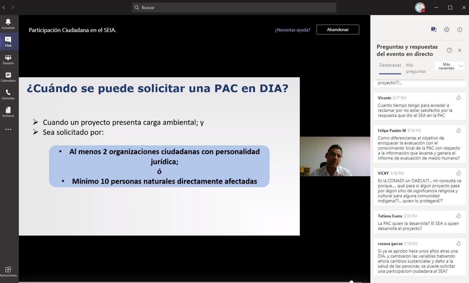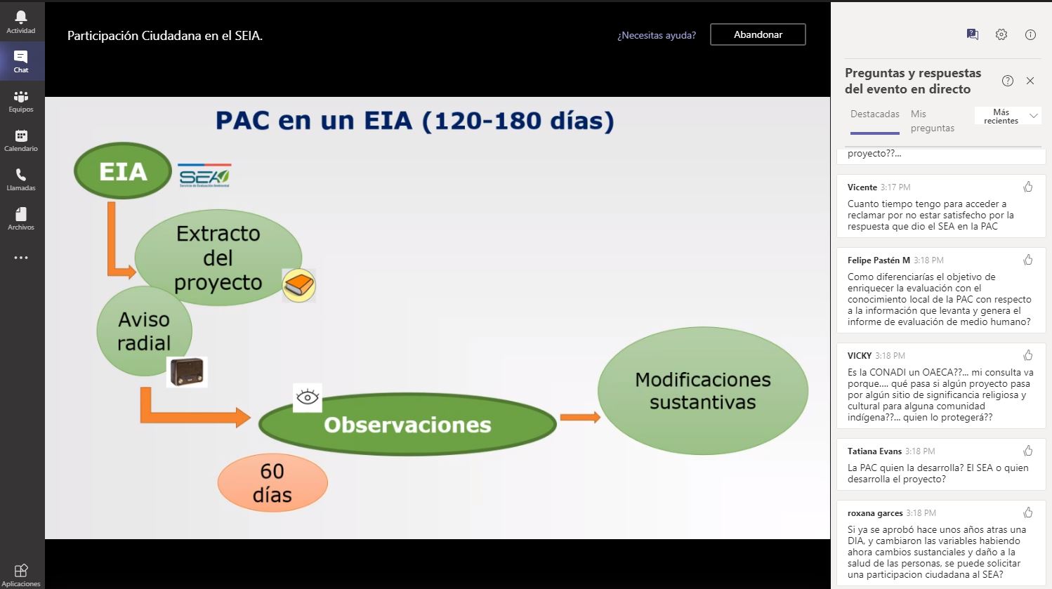 La actividad se enmarca en los talleres a distancia abiertos a toda la ciudadanía que se iniciaron en septiembre del presente año, y que tienen por objetivo dar a conocer distintos aspectos de la Participación Ciudadana en el SEIA, así como del rol del SEA en la evaluación ambiental y el procedimiento del SEIA.