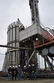 Instalados en el Bloque Arenal, el equipo del SEA en compañía de un equipo de trabajadores de la Empresa Nacional del Petróleo (Enap) Magallanes, visitaron un proyecto de perforación de pozos en modalidad de planchadas multi-pozo, en los que es posible perforar hasta 7 pozos en una misma locación. Esta tecnología posibilita la disminución en los tiempos requeridos para la perforación, como así también, reduce considerablemente la intervención en superficie, necesaria para la instalación de planchadas y caminos de acceso.