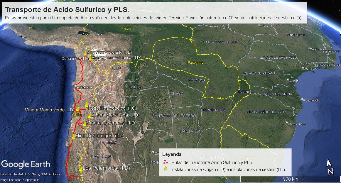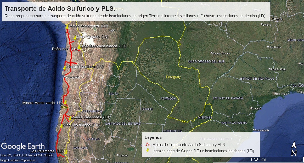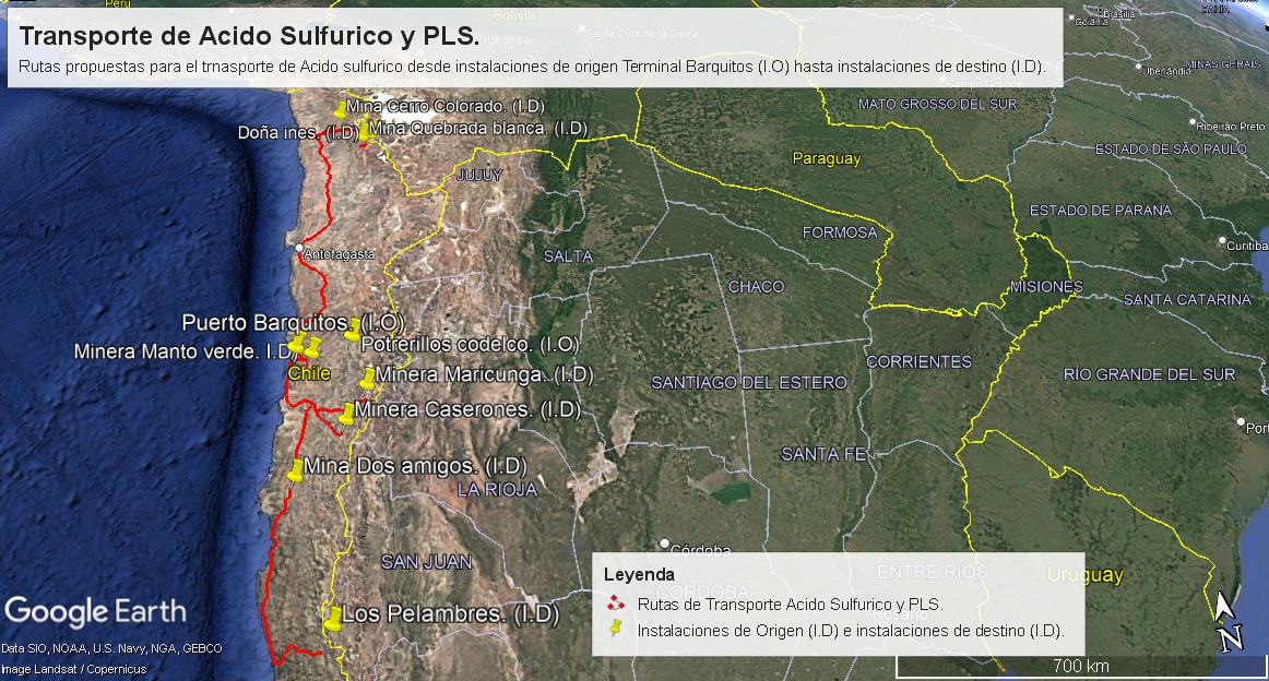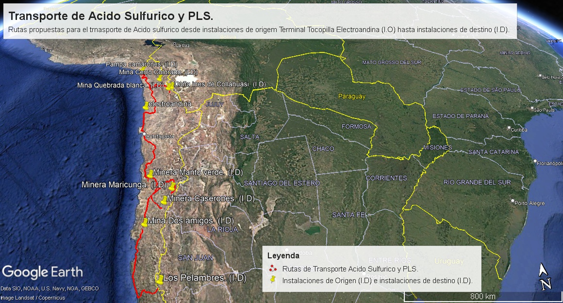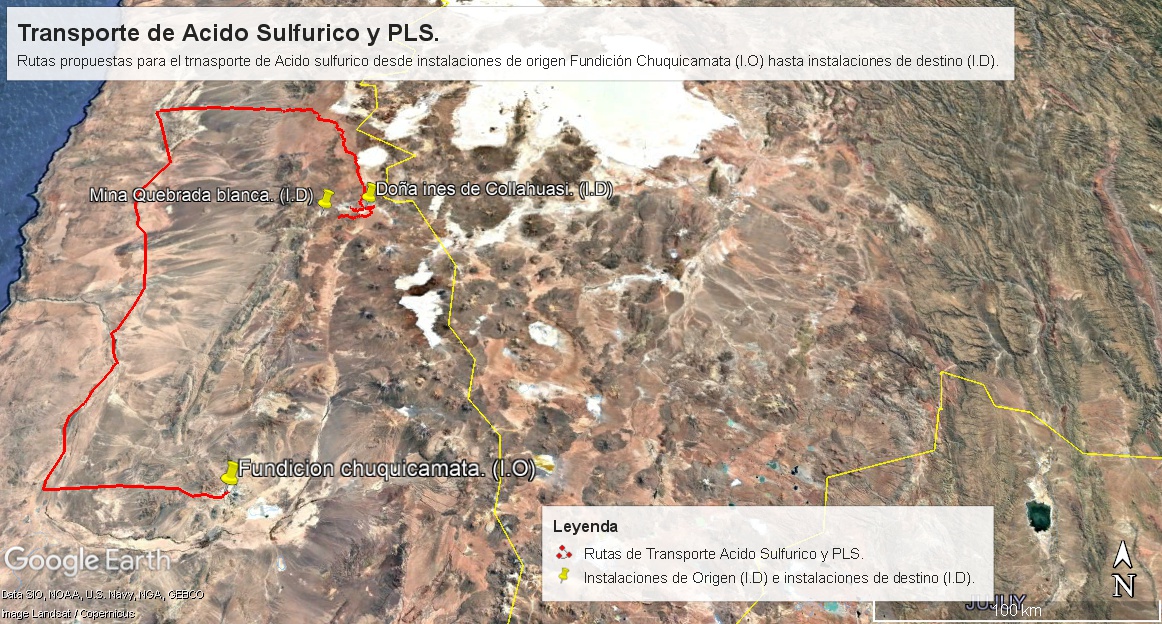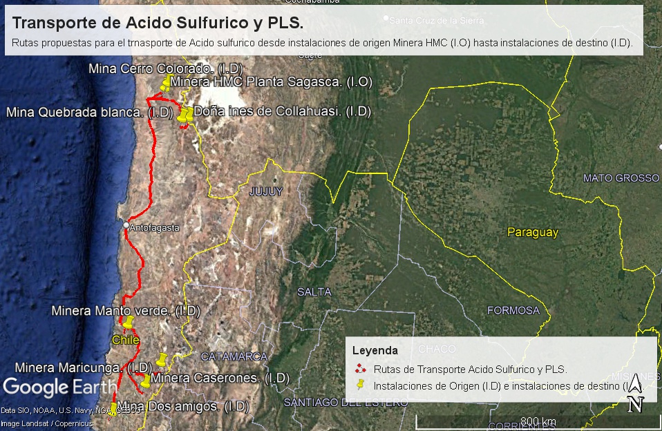 Figura3. Transporte de ácido sulfúrico desde instalaciones de origen Fundición Chuquicamata hasta instalaciones de destino.