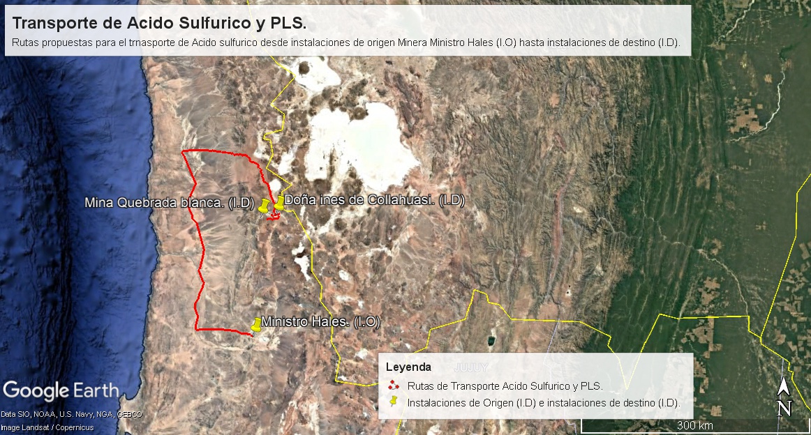 Figura 5. Transporte de ácido sulfúrico desde instalaciones de origen Minera Ministro Hales hasta instalaciones de destino.