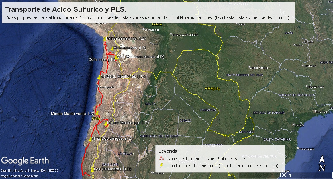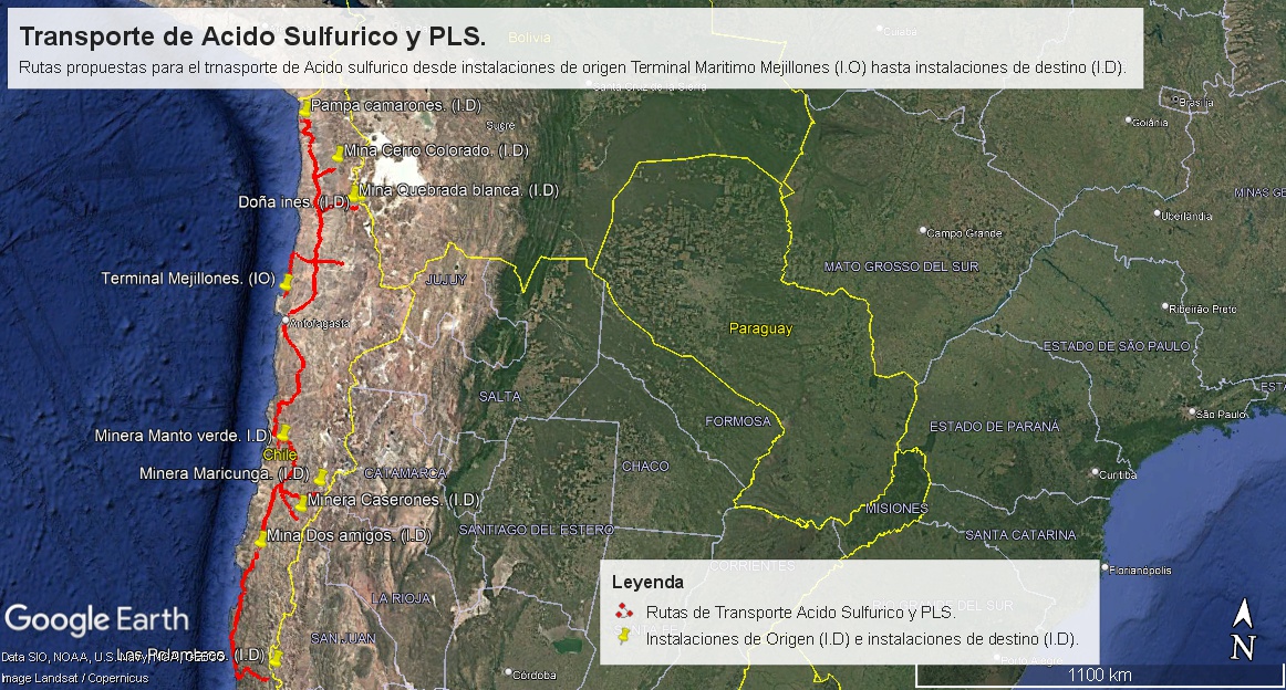 Figura 9. Transporte de ácido sulfúrico desde instalaciones de origen Terminal Marítimo Mejillones hasta instalaciones de destino.