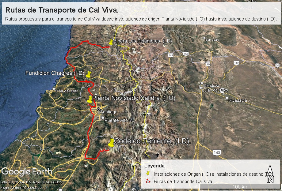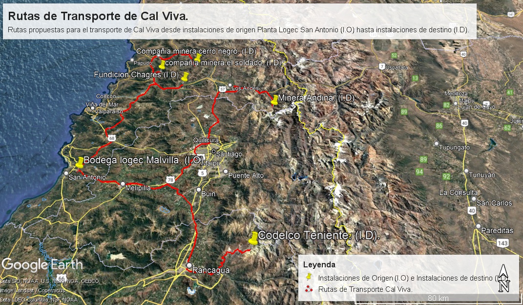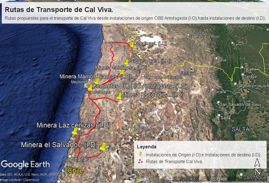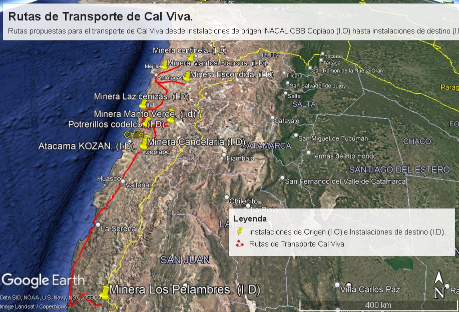 Figura 13 Transporte de Cal viva desde instalaciones de origen INACAL CBB Copiapó hasta instalaciones de destino.