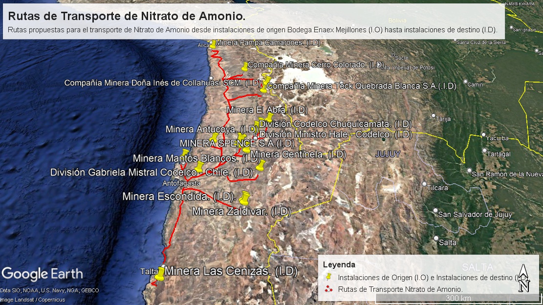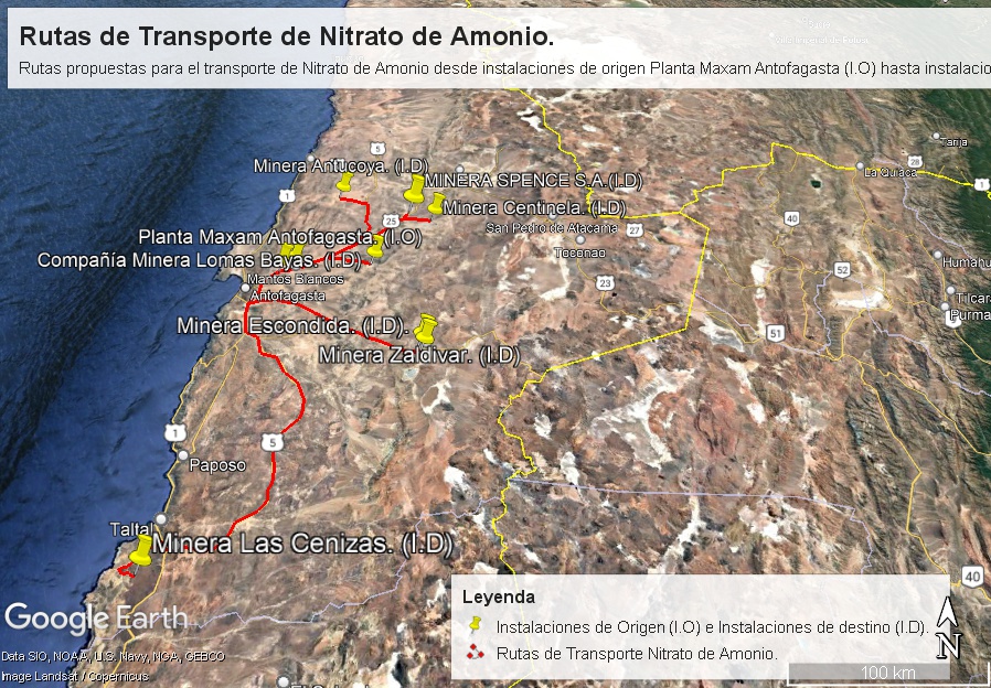 Figura 23 Transporte de Nitrato de Amonio desde instalaciones de origen Planta Enex Río Loa hasta instalaciones de destino