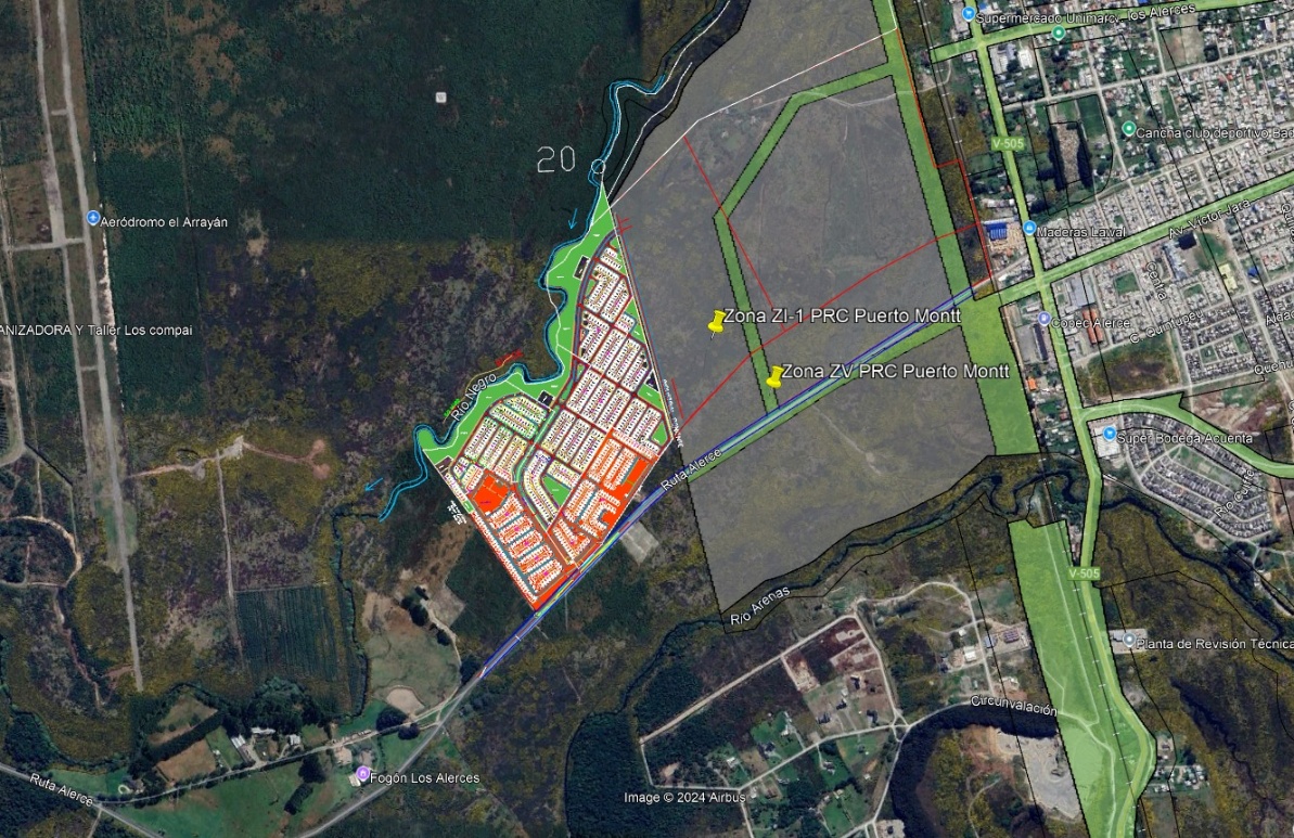 Localización del proyecto respecto de la Zonificación del PRC Al evaluar la relación entre el Plan Regulador Comunal de Puerto Montt la localización del proyecto se emplaza dentro de una zona rural, fuera de los límites urbanos del plano regulador vigente, según el Certificado de Ruralidad de la Dirección de Obras N° 04396. Localización del Proyecto en relación al PRC de Puerto Montt.