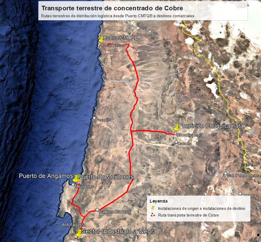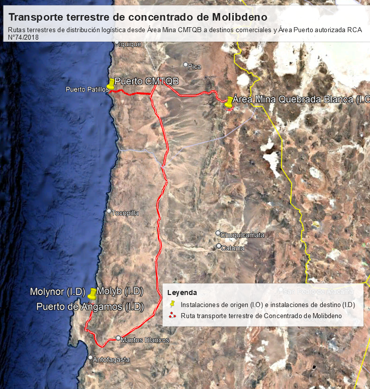 Figura 2. Transporte de concentrado de Molibdeno desde instalaciones de origen Área Mina Quebrada Blanca hasta instalaciones de destino.