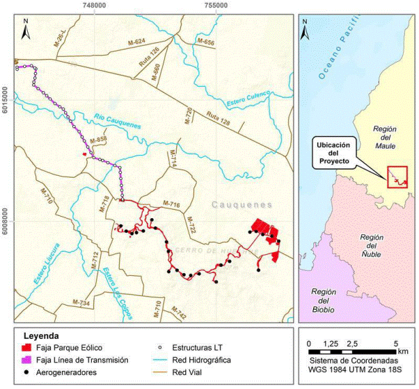 El proyecto estará ubicado en la Región del Maule, Provincia de Cauquenes, Comuna de Cauquenes. Además, será necesario ejecutar obras de infraestructura vial en las comunas de Villa Alegre, San Javier y Cauquenes, las dos primeras de la provincia de Linares y la última, de la provincia de Cauquenes, para facilitar el tránsito de vehículos sobredimensionados. |