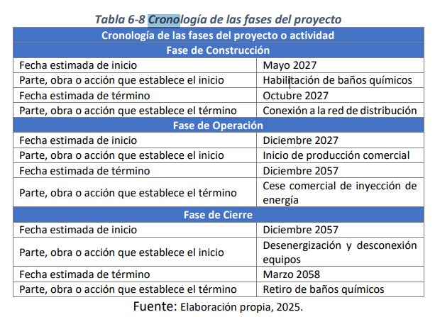 Fuente: Tabla 6-8 de la DIA. Link DIA: https://seia.sea.gob.cl/archivos/2025/11/04/eb8_Capitulo_1_Descripcion_de_Proyecto_Rev0.pdf |